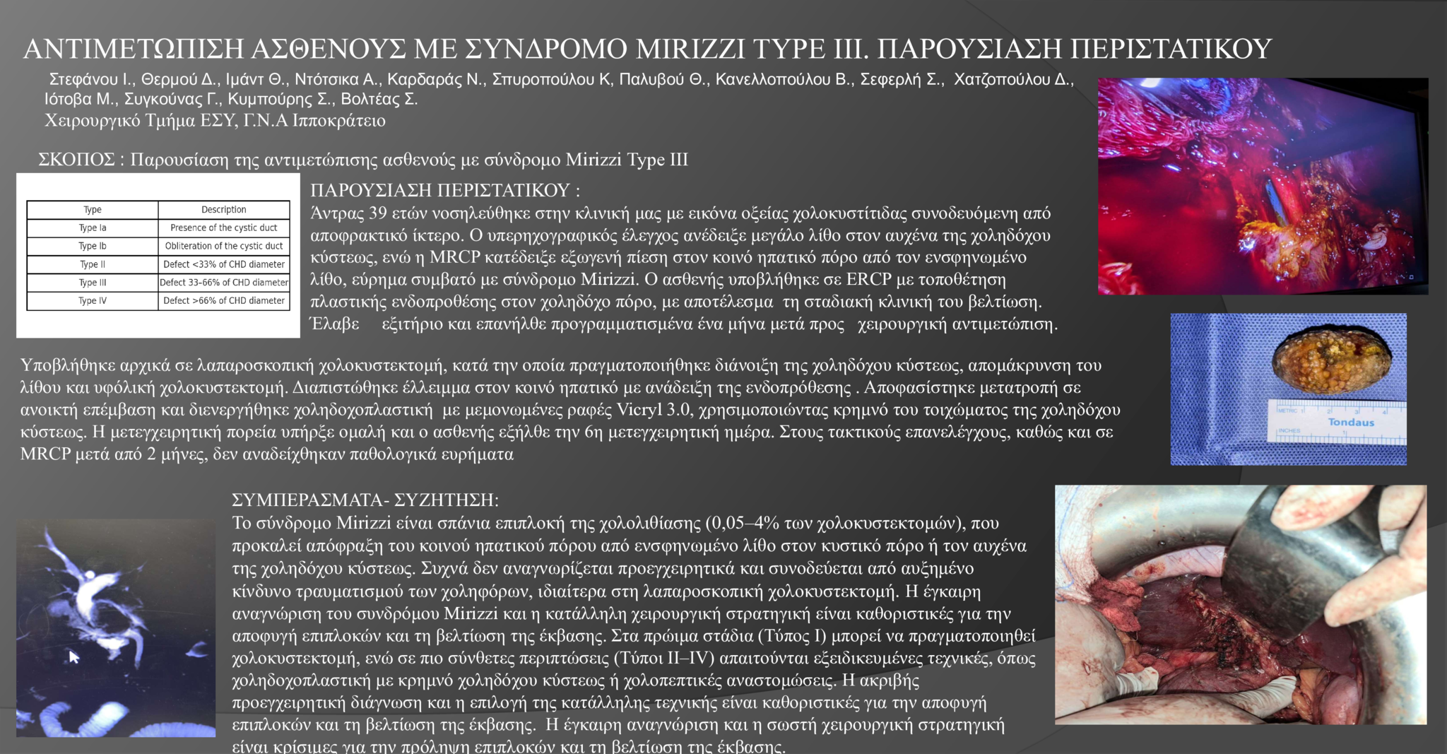 ΣΚΟΠΟΣ : Παρουσίαση της αντιμετώπισης ασθενούς με σύνδρομο Mirizzi Type III