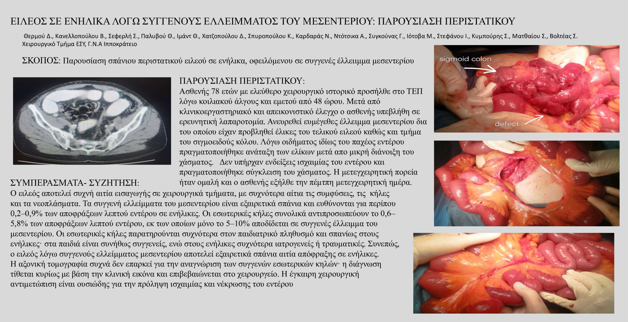 Παρουσίαση περιστατικού ειλεού σε ενήλικα ασθενή, οφειλόμενου σε συγγενές έλλειμμα του μεσεντερίου.
