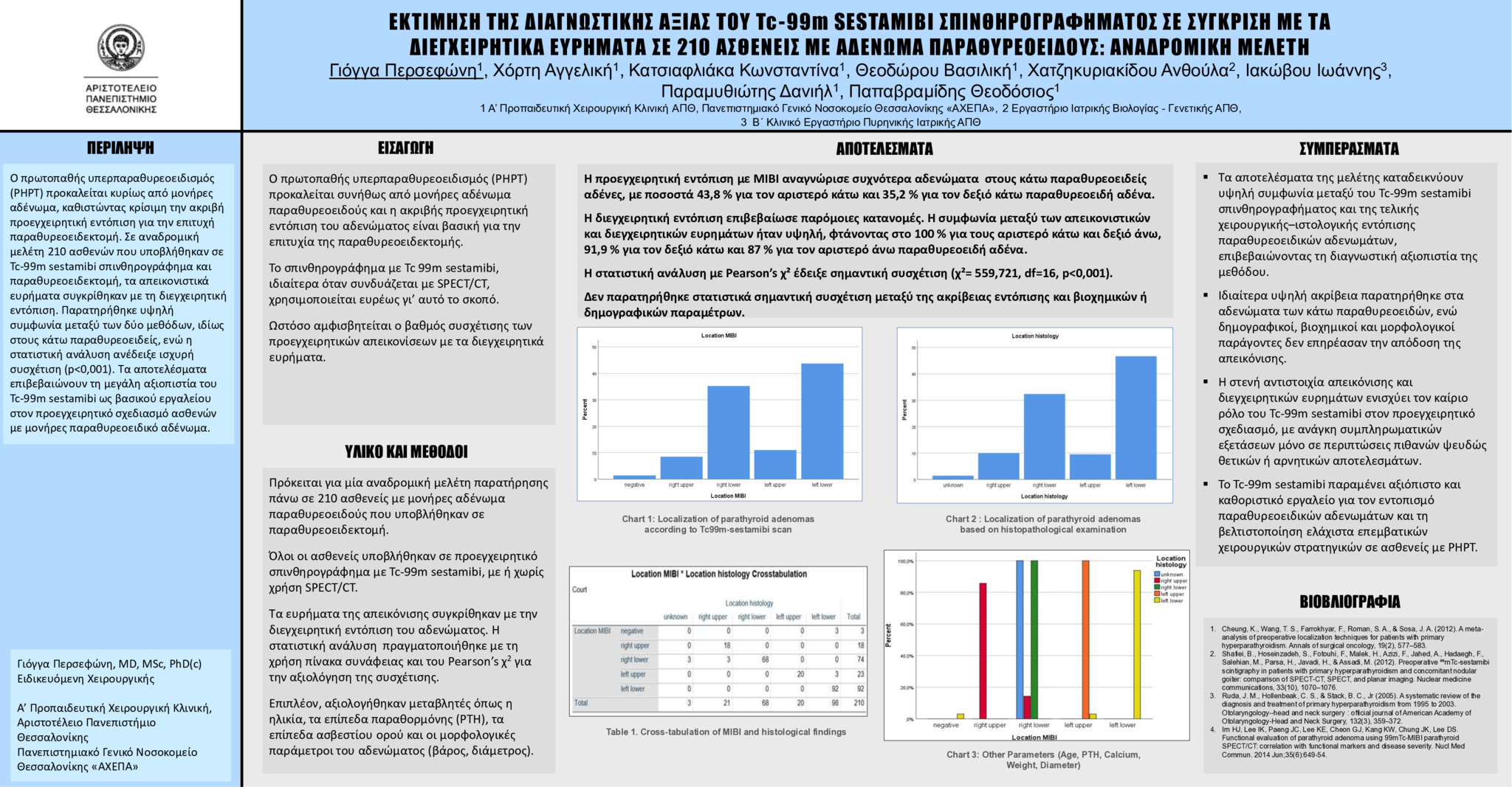 ΕΚΤΙΜΗΣΗ ΤΗΣ ΔΙΑΓΝΩΣΤΙΚΗΣ ΑΞΙΑΣ ΤΟΥ Tc-99m SESTAMIBI ΣΠΙΝΘΗΡΟΓΡΑΦΗΜΑΤΟΣ ΣΕ ΣΥΓΚΡΙΣΗ ΜΕ ΤΑ ΔΙΕΓΧΕΙΡΗΤΙΚΑ ΕΥΡΗΜΑΤΑ ΣΕ 210 ΑΣΘΕΝΕΙΣ ΜΕ ΑΔΕΝΩΜΑ ΠΑΡΑΘΥΡΕΟΕΙΔΟΥΣ: ΑΝΑΔΡΟΜΙΚΗ ΜΕΛΕΤΗ