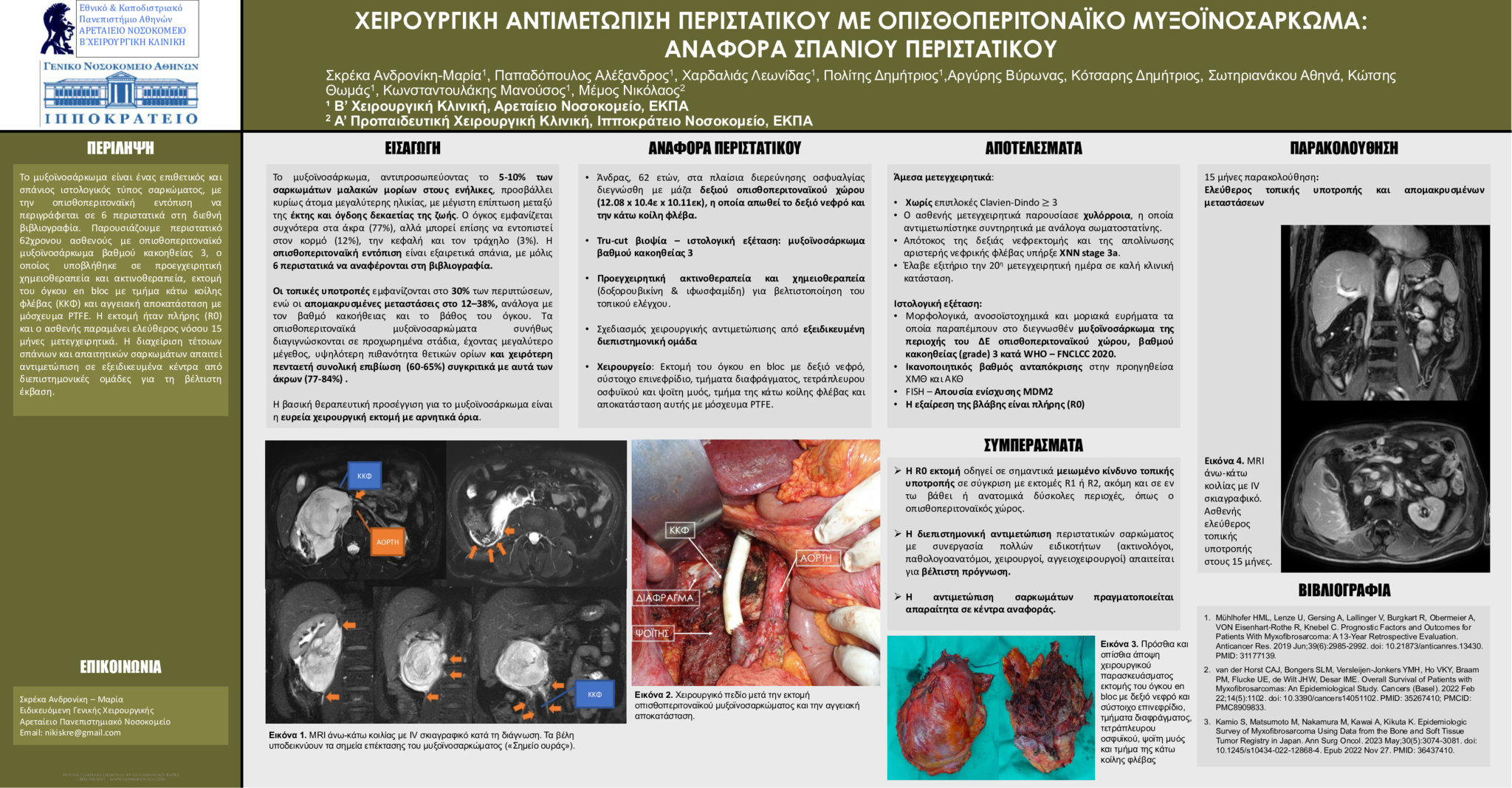 Η παρουσίαση της διαχείρισης ενός σπάνιου περιστατικού οπισθοπεριτοναϊκού μυξοϊνοσαρκώματος, με έμφαση στον προεγχειρητικό σχεδιασμό και τη χειρουργική στρατηγική της διεπιστημονικής ομάδας του κέντρου μας.