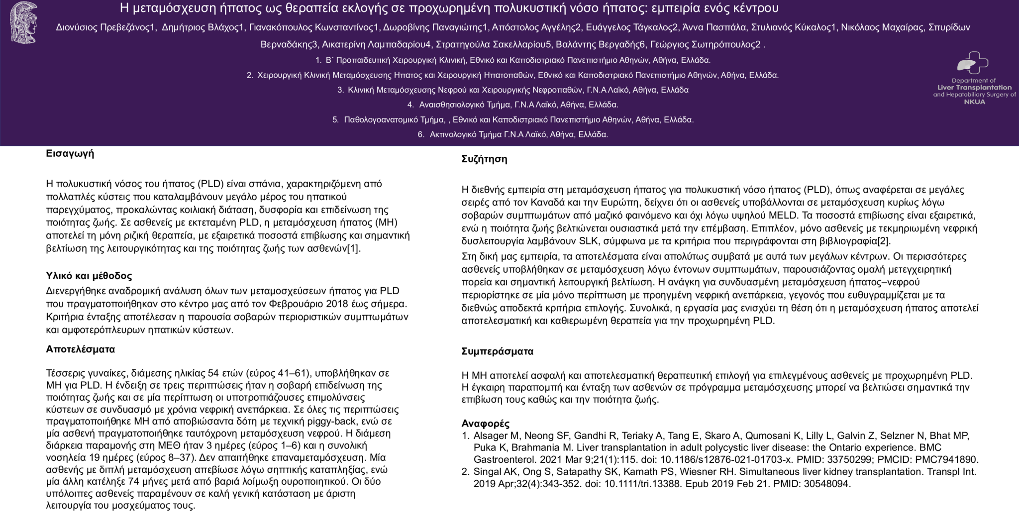 Η ΜΕΤΑΜΟΣΧΕΥΣΗ ΗΠΑΤΟΣ ΩΣ ΘΕΡΑΠΕΙΑ ΕΚΛΟΓΗΣ ΣΕ ΠΡΟΧΩΡΗΜΕΝΗ ΠΟΛΥΚΥΣΤΙΚΗ ΝΟΣΟ ΗΠΑΤΟΣ: ΕΜΠΕΙΡΙΑ ΕΝΟΣ ΚΕΝΤΡΟΥ
