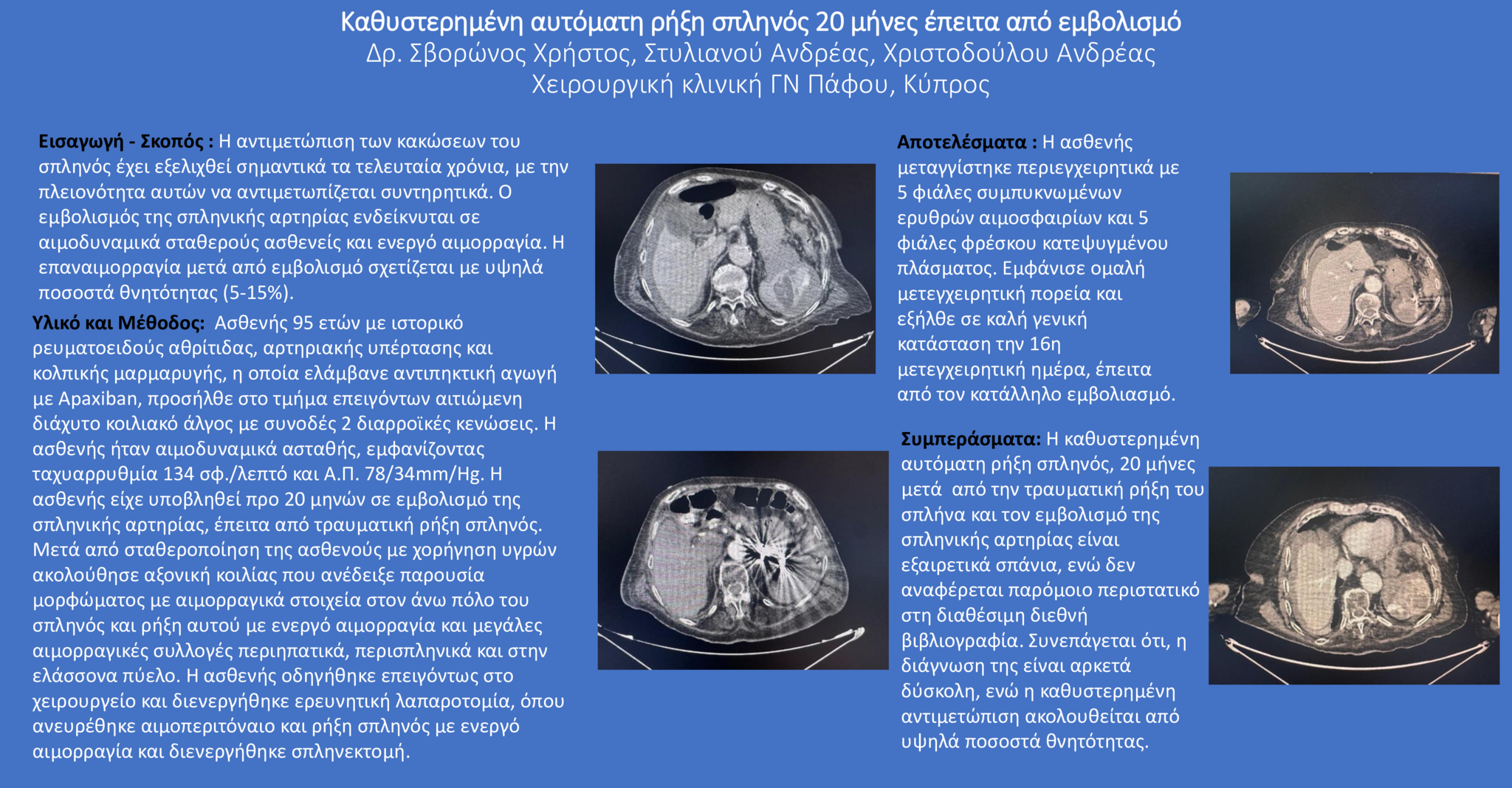 Καθυστερημένη αυτόματη ρήξη σπληνός 20 μήνες έπειτα από εμβολισμό