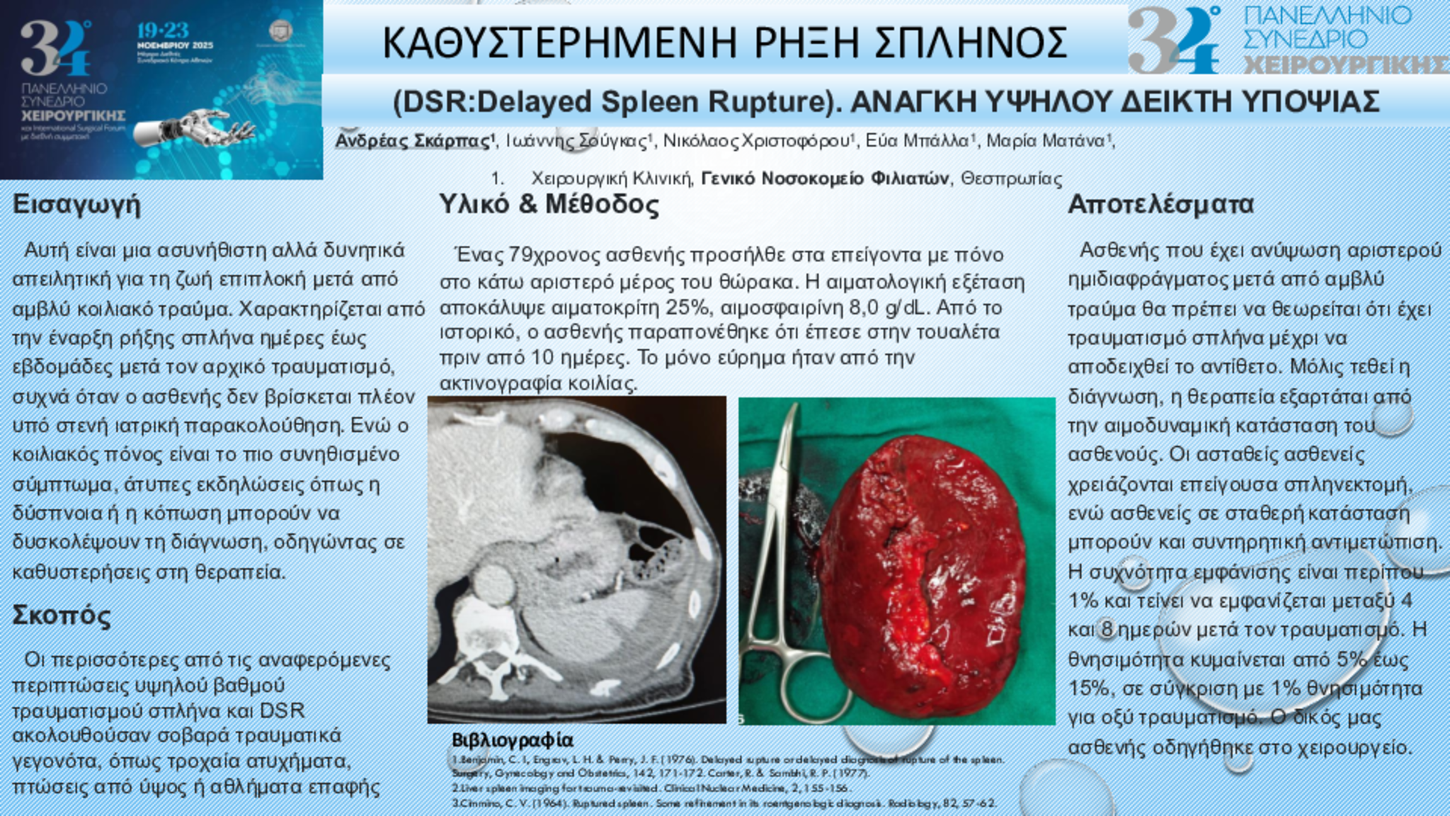 ΚΑΘΥΣΤΕΡΗΜΕΝΗ ΡΗΞΗ ΣΠΛΗΝΟΣ (DSR:Delayed Spleen Rupture). ΑΝΑΓΚΗ ΥΨΗΛΟΥ ΔΕΙΚΤΗ ΥΠΟΨΙΑΣ