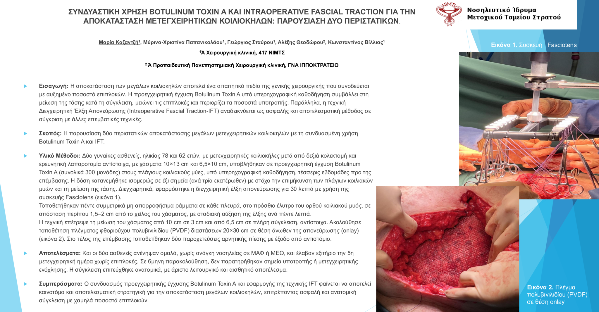 ερευνητική λαπαροτομία αντίστοιχα, με χάσματα 10×13 cm και 6,5×10 cm, υποβλήθηκαν σε προεγχειρητική έγχυση Botulinum
