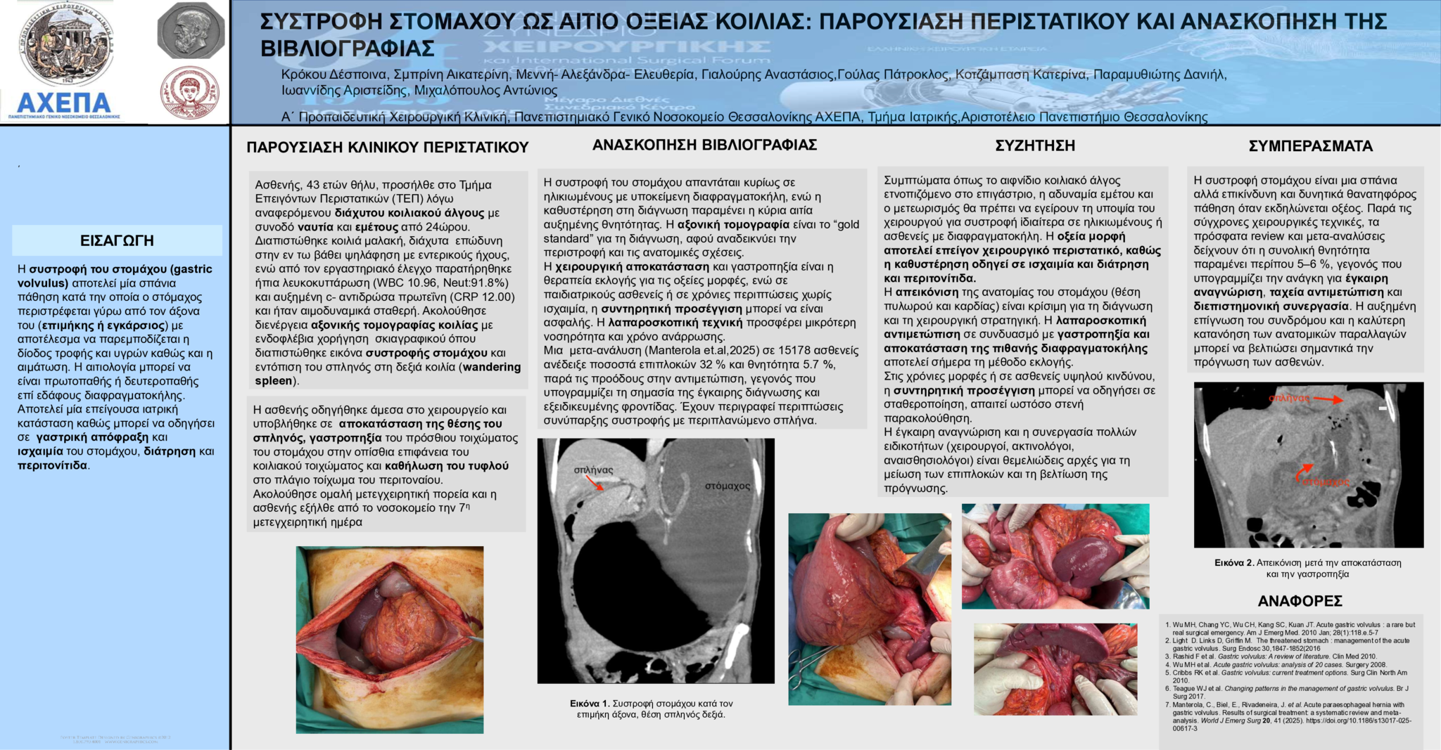 ΣΥΣΤΡΟΦΗ ΣΤΟΜΑΧΟΥ ΩΣ ΑΙΤΙΟ ΟΞΕΙΑΣ ΚΟΙΛΙΑΣ- ΠΑΡΟΥΣΙΑΣΗ ΠΕΡΙΣΤΑΤΙΚΟΥ ΚΑΙ ΑΝΑΣΚΟΠΗΣΗ ΒΙΒΛΙΟΓΡΑΦΙΑΣ