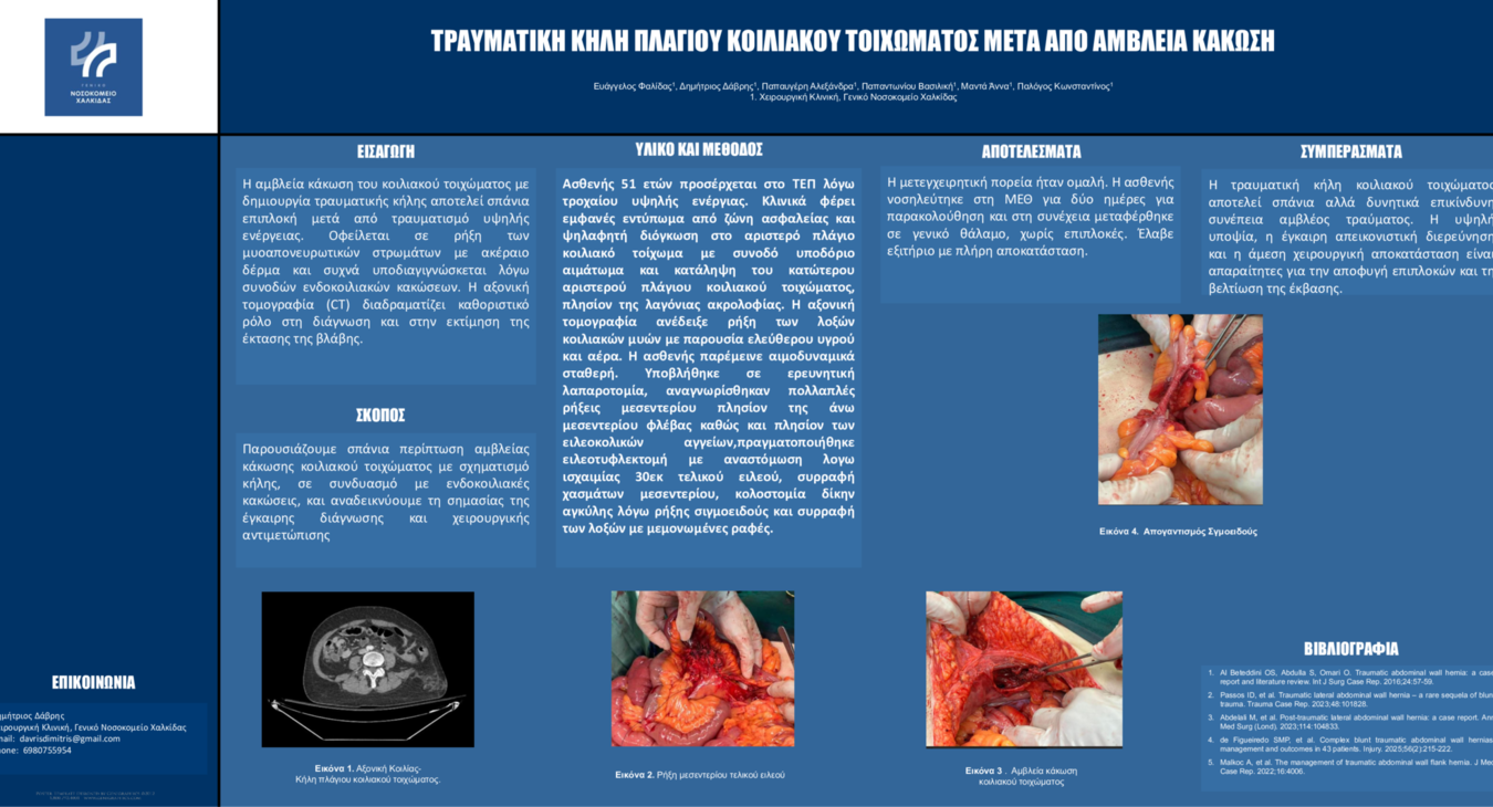 ΤΡΑΥΜΑΤΙΚΗ ΚΗΛΗ ΠΛΑΓΙΟΥ ΚΟΙΛΙΑΚΟΥ ΤΟΙΧΩΜΑΤΟΣ ΜΕΤΑ ΑΠΟ ΑΜΒΛΕΙΑ ΚΑΚΩΣΗ