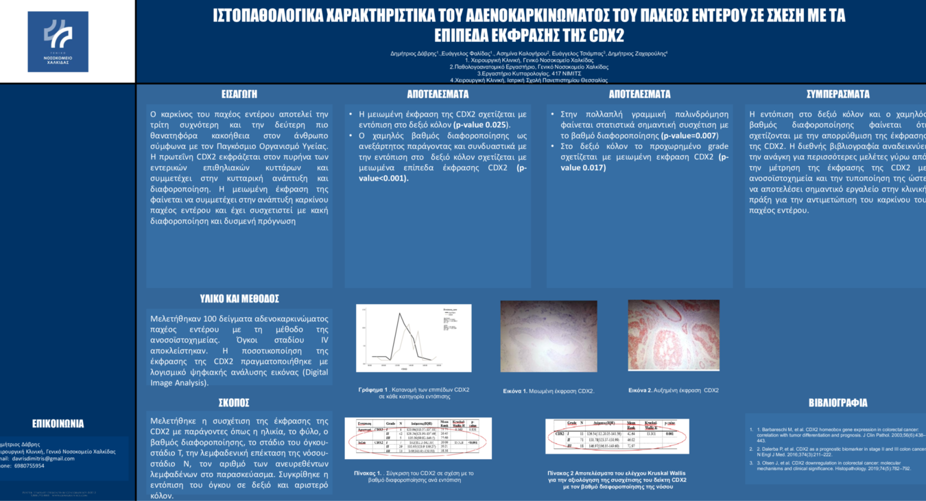 ΙΣΤΟΠΑΘΟΛΟΓΙΚΑ ΧΑΡΑΚΤΗΡΙΣΤΙΚΑ ΤΟΥ ΑΔΕΝΟΚΑΡΚΙΝΩΜΑΤΟΣ ΤΟΥ ΠΑΧΕΟΣ ΕΝΤΕΡΟΥ ΣΕ ΣΧΕΣΗ ΜΕ ΤΑ ΕΠΙΠΕΔΑ ΕΚΦΡΑΣΗΣ CDX2