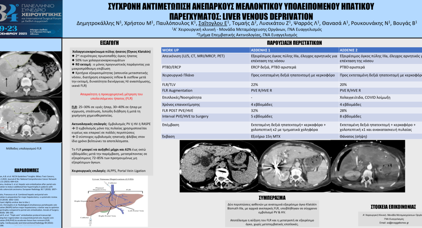 Χρήστου Μαρία ΣΥΓΧΡΟΝΗ ΑΝΤΙΜΕΤΩΠΙΣΗ ΑΝΕΠΑΡΚΟΥΣ ΜΕΛΛΟΝΤΙΚΟΥ ΥΠΟΛΕΙΠΟΜΕΝΟΥ ΗΠΑΤΙΚΟΥ ΠΑΡΕΓΧΥΜΑΤΟΣ: LIVER VENOUS DEPRIVATION / Χειρουργική παθήσεων Ήπατος-Παγκρέατος -Χοληφόρων