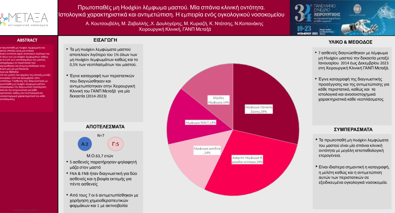 ΕΑΝΠ "Μεταξά" ePosters Κοπανάκης Νικόλαος Πρωτοπαθές μη Hodgkin λέμφωμα μαστού. Μια σπάνια κλινική οντότητα. Ιστολογικά χαρακτηριστικά και αντιμετώπιση. Η εμπειρία ενός ογκολογικού νοσοκομείου / Χειρουργική παθήσεων μαστού
