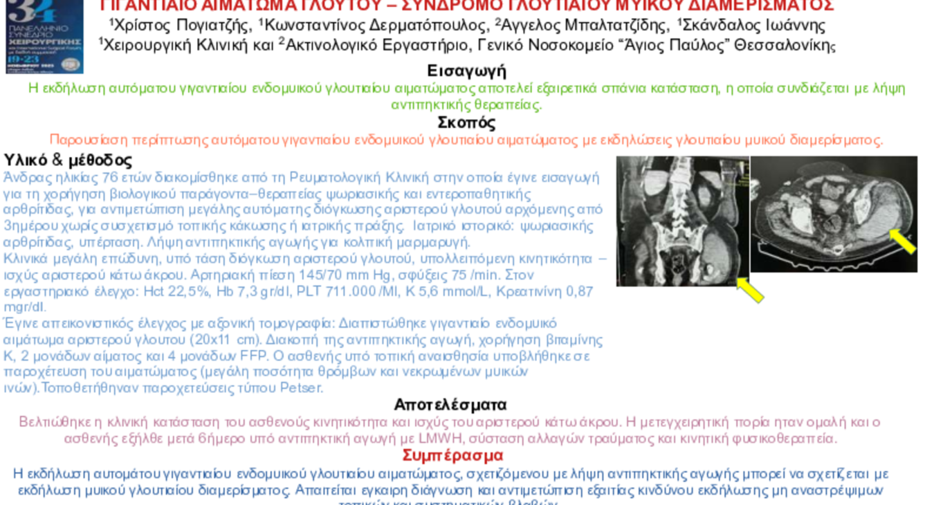 ΓΙΓΑΝΤΙΑΙΟ ΑΙΜΑΤΩΜΑ ΓΛΟΥΤΟΥ – ΣΥΝΔΡΟΜΟ ΓΛΟΥΤΙΑΙΟΥ ΜΥΙΚΟΥ ΔΙΑΜΕΡΙΣΜΑΤΟΣ