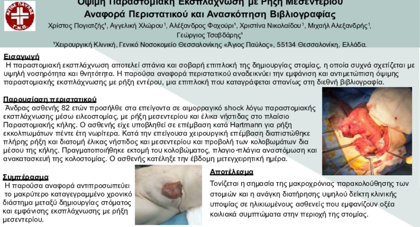 Όψιμη Παραστοματική Εκσπλάχνωση με Ρήξη Μεσεντερίου: Αναφορά Περιστατικού και Ανασκόπηση Βιβλιογραφίας