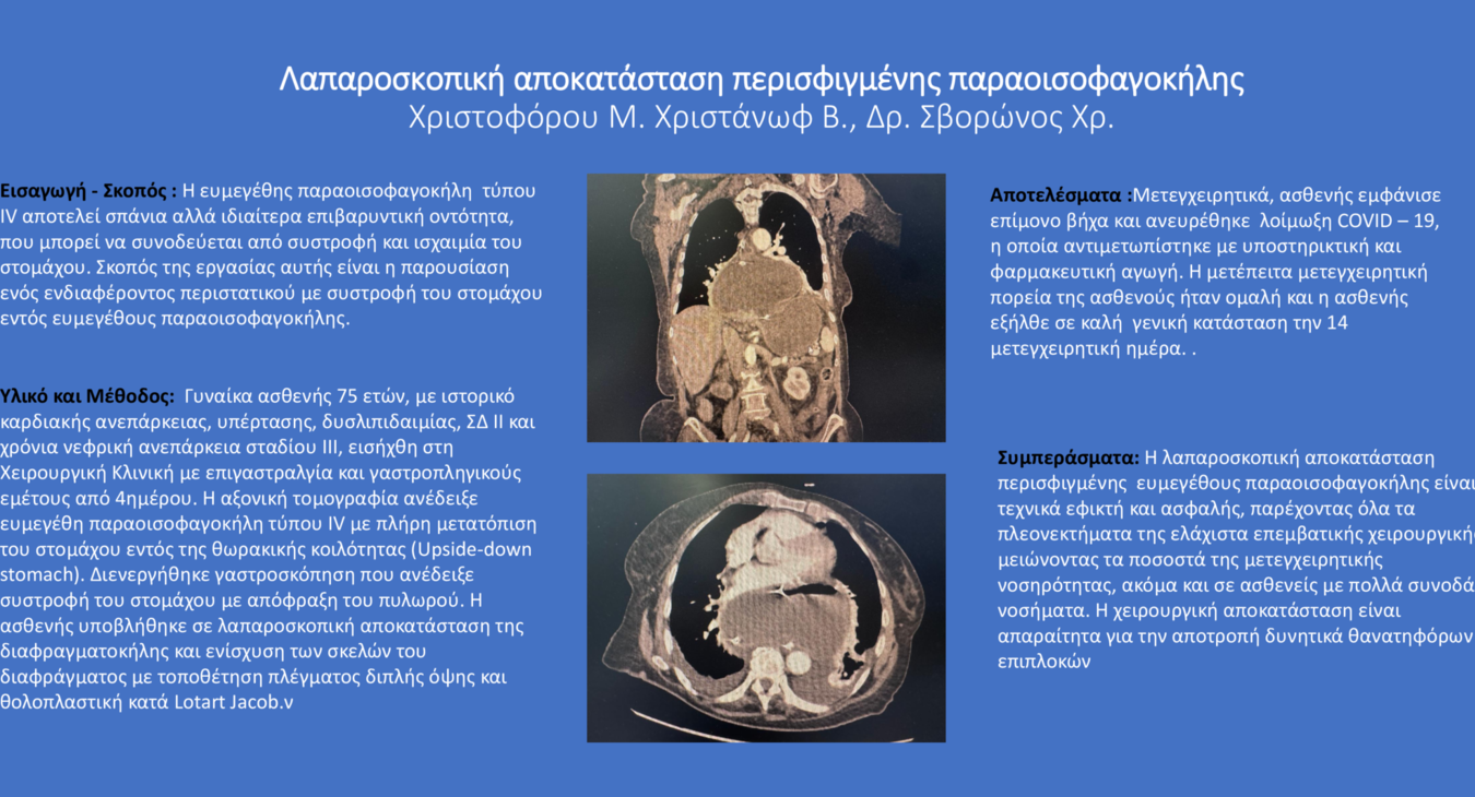 Σβορωνος Χρήστος Λαπαροσκοπική αποκατάσταση περισφιγμένης παραοισοφαγοκήλης / Χειρουργική παθήσεων ανώτερου πεπτικού