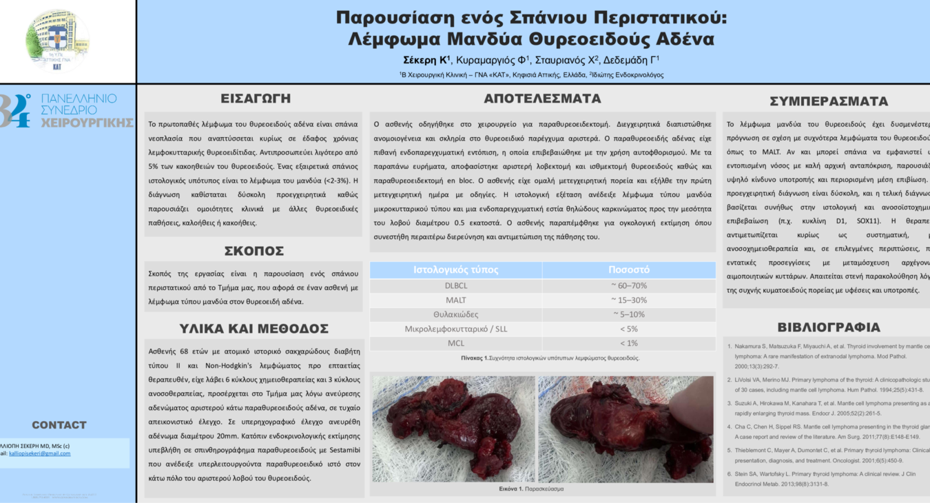 Παρουσίαση ενός Σπάνιου Περιστατικού:Λέμφωμα τύπου Μανδύα του Θυρεοειδούς Αδένα