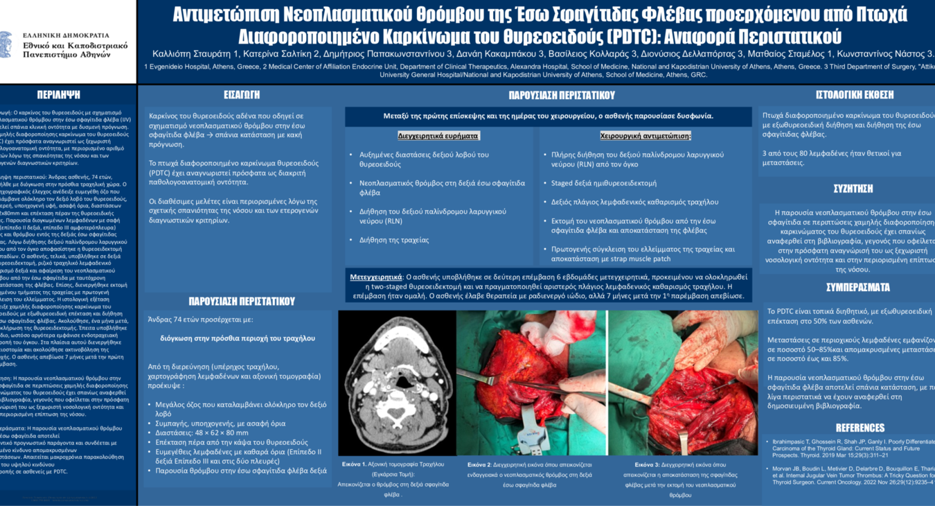 ΝΕΟΠΛΑΣΜΑΤΙΚΟΣ ΘΡΟΜΒΟΣ ΤΗΣ ΕΣΩ ΣΦΑΓΙΤΙΔΑΣ ΑΠΟ ΧΑΜΗΛΗΣ ΔΙΑΦΟΡΟΠΟΙΗΣΗΣ ΚΑΡΚΙΝΩΜΑ ΘΥΡΕΟΕΙΔΟΥΣ: ΑΝΑΦΟΡΑ ΠΕΡΙΠΤΩΣΗΣ