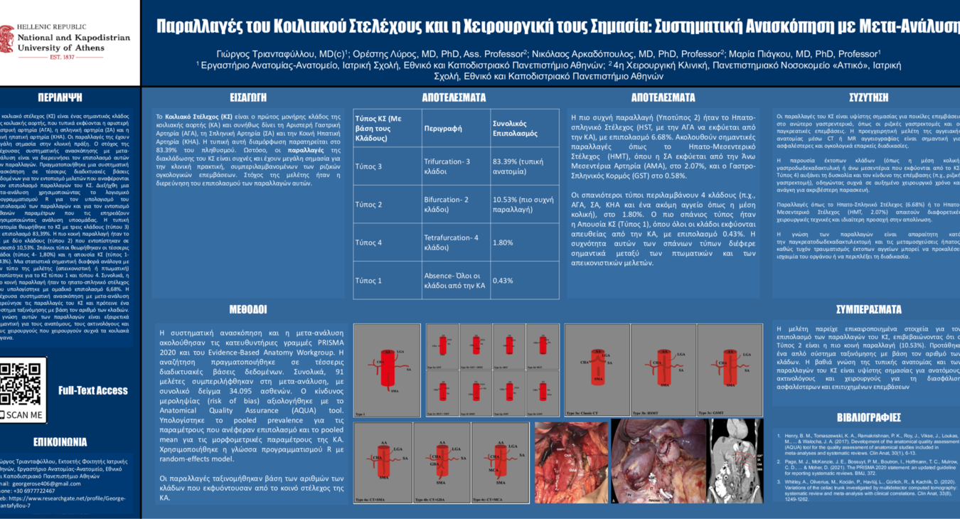 Εθνικό Και Καποδιστριακό Πανεπιστήμιο Αθηνών ePosters Τριανταφύλλου Γιώργος Παραλλαγές του Κοιλιακού Στελέχους και η Χειρουργική τους Σημασία: Συστηματική Ανασκόπηση με Μετα-Ανάλυση / Χειρουργική παθήσεων ανώτερου πεπτικού Τριανταφύλλου Γιώργος Χειρουργική Ανατομία της Κυστικής Αρτηρίας: Συστηματική Ανασκόπηση με Μετα-Ανάλυση / Χειρουργική παθήσεων Ήπατος-Παγκρέατος -Χοληφόρων