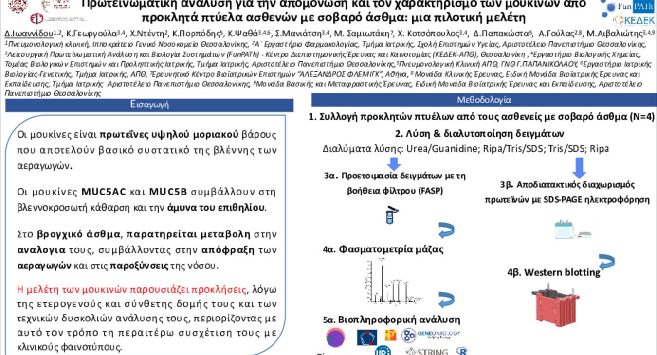 ΠΡΩΤΕΙΝΩΜΑΤΙΚΗ ΑΝΑΛΥΣΗ ΓΙΑ ΤΗΝ ΑΠΟΜΟΝΩΣΗ ΚΑΙ ΤΟΝ ΧΑΡΑΚΤΗΡΙΣΜΟ ΤΩΝ ΜΟΥΚΙΝΩΝ ΑΠΟ ΠΡΟΚΛΗΤΑ ΠΤΥΕΛΑ ΑΣΘΕΝΩΝ ΜΕ ΣΟΒΑΡΟ ΑΣΘΜΑ: ΜΙΑ ΠΙΛΟΤΙΚΗ ΜΕΛΕΤΗ