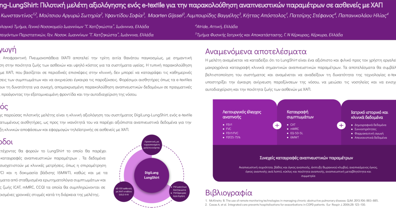 DigiLung-LungShirt: ΠΙΛΟΤΙΚΗ ΜΕΛΕΤΗ ΑΞΙΟΛΟΓΗΣΗΣ ΕΝΟΣ E-TEXTILE ΓΙΑ ΤΗΝ ΠΑΡΑΚΟΛΟΥΘΗΣΗ ΑΝΑΠΝΕΥΣΤΙΚΩΝ ΠΑΡΑΜΕΤΡΩΝ ΣΕ ΑΣΘΕΝΕΙΣ ΜΕ ΧΑΠ