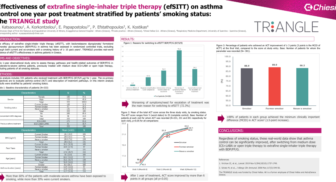 Effectiveness of extrafine single-inhaler triple therapy (efSITT) on asthma control one year post treatment stratified by patients’ smoking status: the Triangle study