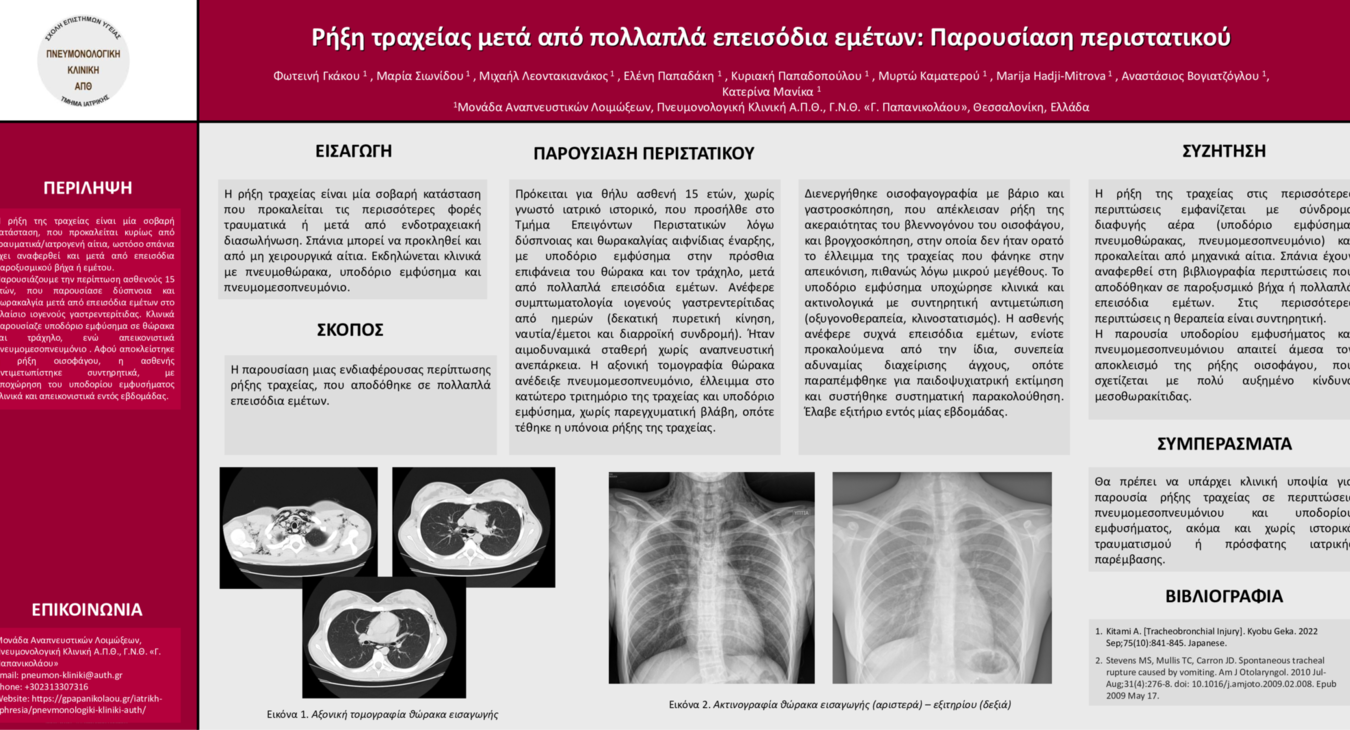Ρήξη τραχείας μετά από πολλαπλά επεισόδια εμέτων: Παρουσίαση Περιστατικού