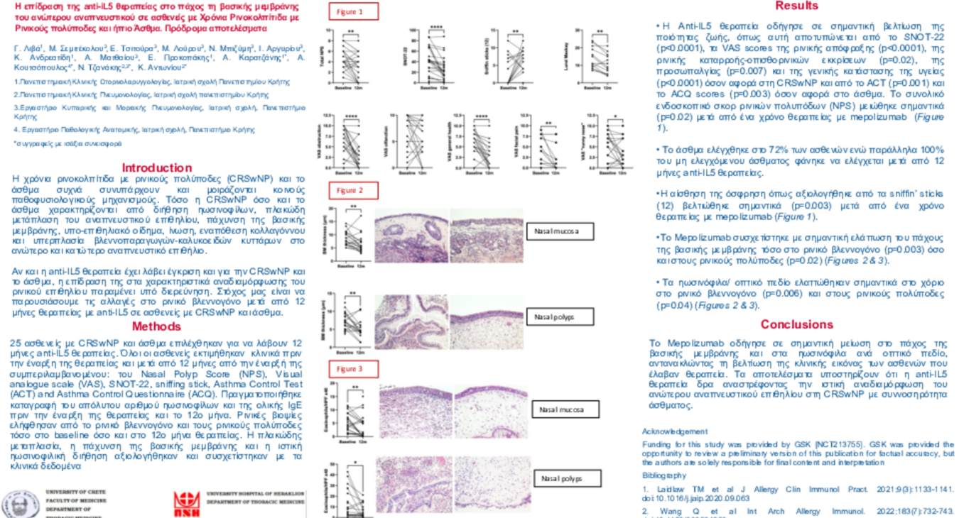 Η επίδραση της anti-IL5 θεραπείας στο πάχος τη βασικής μεμβράνης του ανώτερου αναπνευστικού σε ασθενείς με Χρόνια Ρινοκολπίτιδα με Ρινικούς πολύποδες και ήπιο Άσθμα. Πρόδρομα αποτελέσματα μελέτης RHINEA