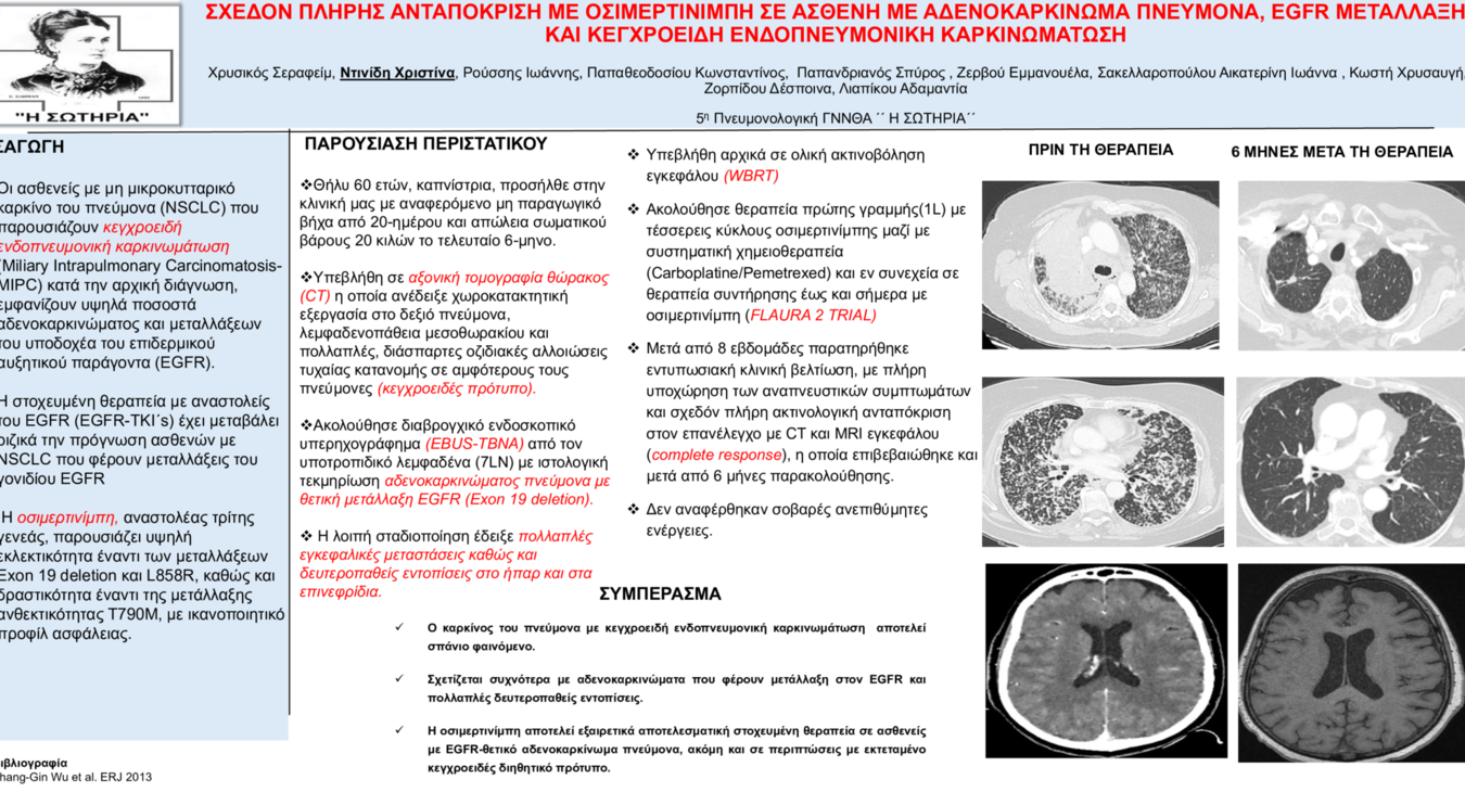 Χρυσικός Σεραφείμ ΣΧΕΔΟΝ ΠΛΗΡΗΣ ΑΝΤΑΠΟΚΡΙΣΗ ΜΕ ΟΣΙΜΕΡΤΙΝΙΜΠΗ ΣΕ ΑΣΘΕΝΗ ΜΕ ΑΔΕΝΟΚΑΡΚΙΝΩΜΑ ΠΝΕΥΜΟΝΑ, EGFR ΜΕΤΑΛΛΑΞΗ ΚΑΙ ΚΕΓΧΡΟΕΙΔΗ ΕΝΔΟΠΝΕΥΜΟΝΙΚΗ ΚΑΡΚΙΝΩΜΑΤΩΣΗ / Καρκίνος Πνεύμονα