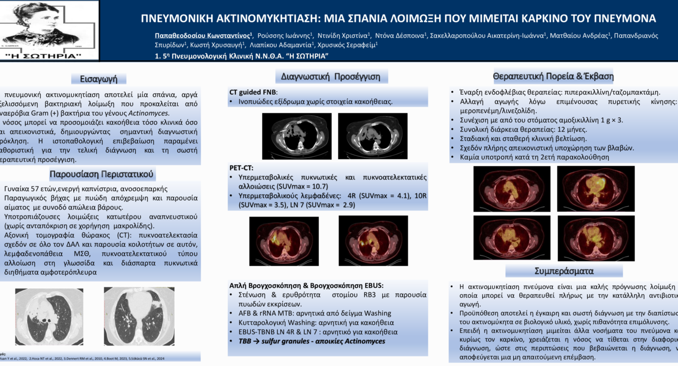 Χρυσικός Σεραφείμ ΠΝΕΥΜΟΝΙΚΗ ΑΚΤΙΝΟΜΥΚΗΤΙΑΣΗ: ΜΙΑ ΣΠΑΝΙΑ ΛΟΙΜΩΞΗ ΠΟΥ ΜΙΜΕΙΤΑΙ ΚΑΡΚΙΝΟ ΤΟΥ ΠΝΕΥΜΟΝΑ / Λοιμώξεις Αναπνευστικού Συστήματος